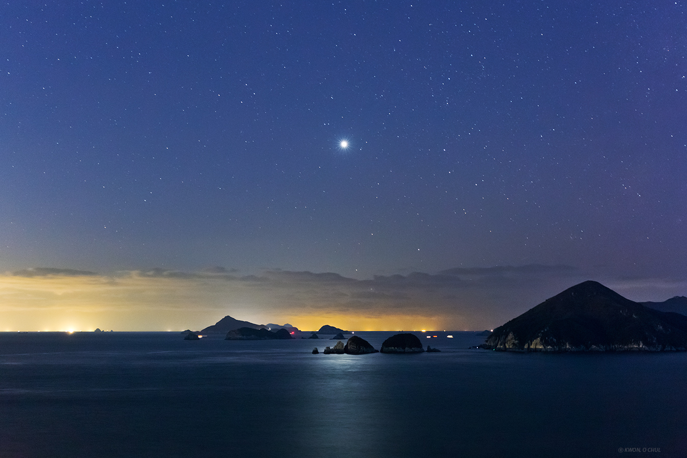 금성 최대 밝기일 때. 금성이 바다에 빛을 드리운다.