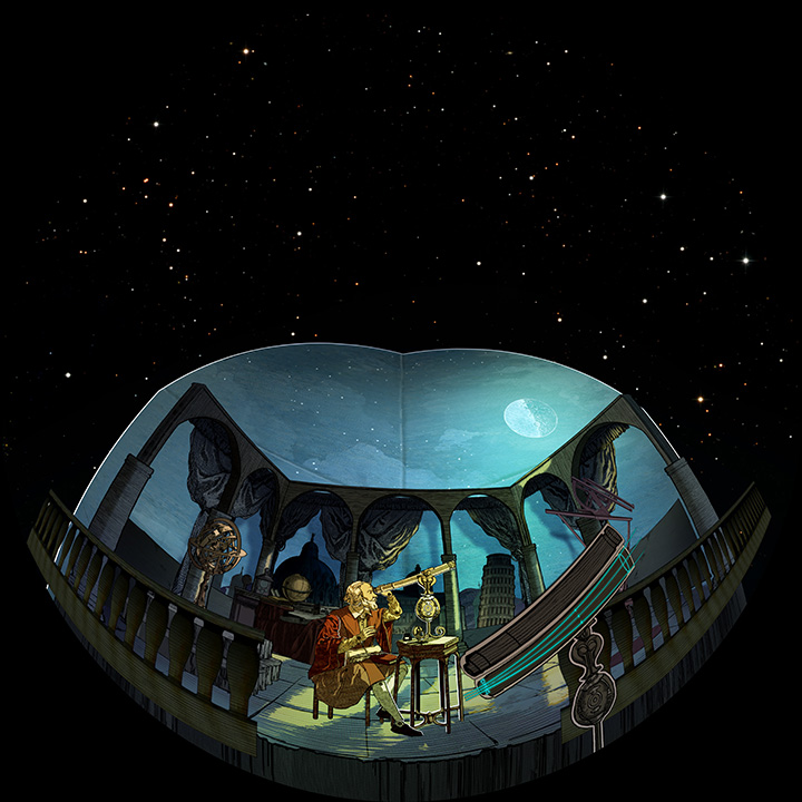 예전 것들은 팝업북 형식의 3D 애니메이션으로 구성했고, 현대의 망원경은 직접 세계를 돌며 촬영했습니다.